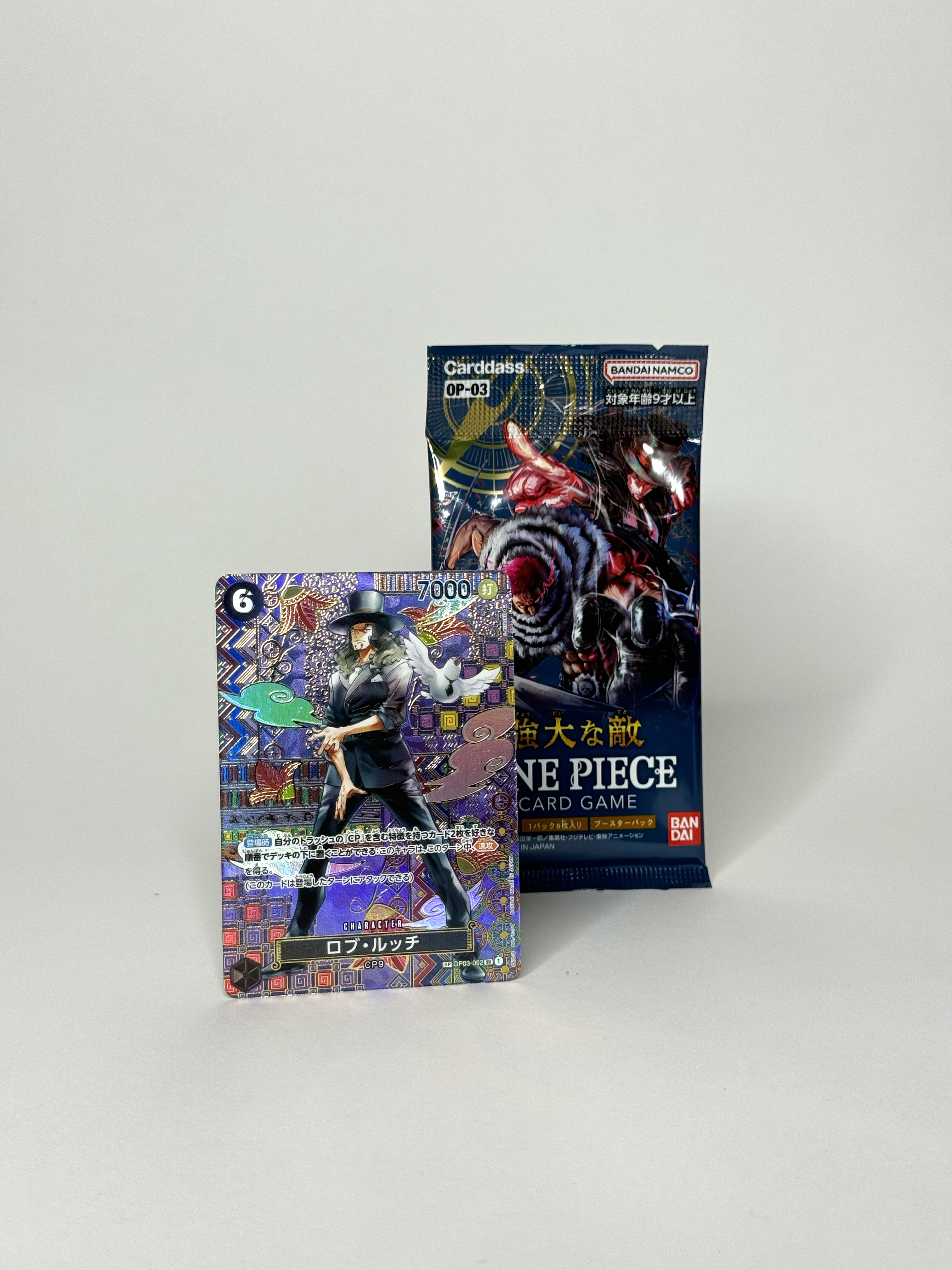 Triple Pack • Includes 3 One Piece Japan: OP03 Mighty Enemies booster packs. Each booster pack contains 6 cards. Cards vary by pack.