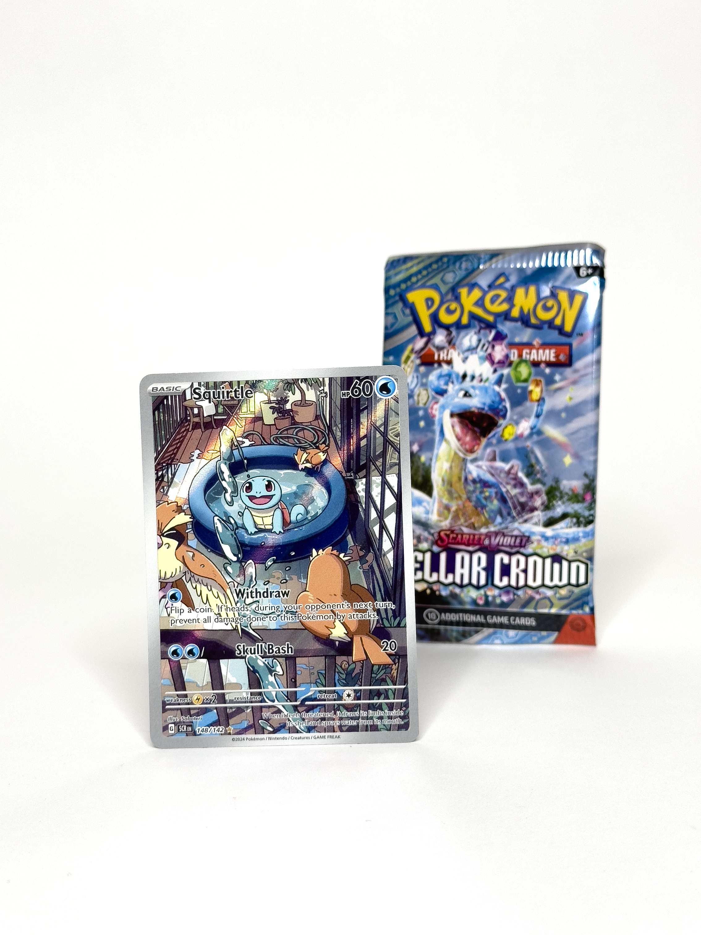 Descend into a world below the surface and discover the true potential of the Terastal phenomenon! The Legendary Pokémon Terapagos takes the throne, joined by Cinderace ex, Lapras ex, and Galvantula ex, all wielding brilliant new powers as Stellar Tera Pokémon ex. The newly discovered Hydrapple ex leads even more Pokémon ex into battle, and ACE SPEC cards continue to shake up the game in the Pokémon TCG: Scarlet & Violet—Stellar Crown expansion!